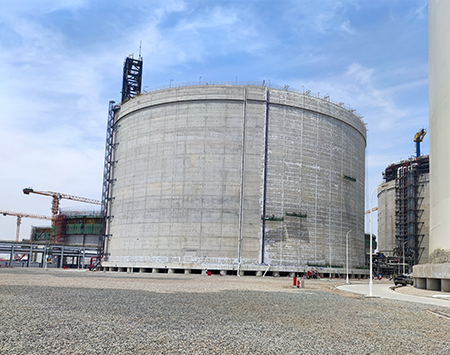 北燃天津南港LNG應(yīng)急儲(chǔ)備項(xiàng)目的薄膜型LNG儲(chǔ)罐是目前全球最大的陸上LNG薄膜罐,是為北京市提供安保用氣、加速京津冀一體化的重點(diǎn)項(xiàng)目,我司承攬此項(xiàng)目二、三階段共計(jì)六臺(tái)薄膜罐的防潮層施工工作